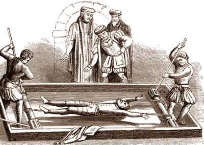 Tortyr genom sträckning av kroppen tills någon lem brister