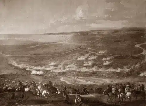 När sedan den danska högerflygeln vid 10-tiden överraskande anföll var den svenska vänsterflygeln, där Västgöta ryttare ingick, inte beredd. Läget förvärrades av att det danska anfallet ansattes, inte rent frontalt utan delvis omfattande från höger. Den svenske befälhavaren general Galle måste splittra sin styrka så att en mindre del fick kämpa skild från huvudstyrkan. Denna del utgjordes av Burghausens karelska dragoner och Västgöta ryttare.