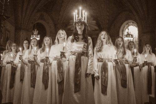 Lucia ser många framför sig en vitklädd flicka med ljuskrona, som med ljudlösa steg på bara fötter skrider fram, åtföljd av tärnor, stjärngossar och möjligen någon tomte, medan Luciasången fyller rummet på ett magiskt sätt. Harmonierna, ljuset, stämningen, allt är förtrollande oskuldsfullt och vackert.